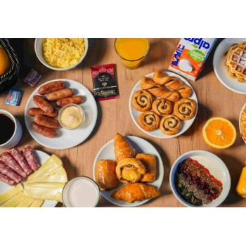 Dégustez des fruits frais, un assortiment de fromages en portions, un café éco-responsable, des thés bio, et un jus d'orange 100% pur jus.
